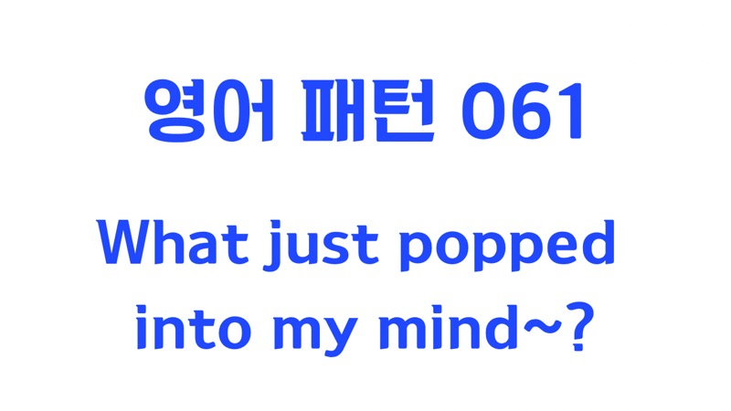 '영어 언제까지 못할래? > 영어 패턴' 카테고리의 다른 글
